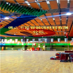 凱音吸聲體是專(zhuān)用于體育館空間吸聲裝飾作用的功能性裝飾材料,是一種分散懸掛于建筑空間上部,用以降低室內(nèi)噪聲或改善室內(nèi)音質(zhì)的吸聲構(gòu)件??臻g吸聲體具有用料少、重量輕、投資省、吸聲效率高、布置靈活、施工方便的特點(diǎn)。